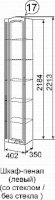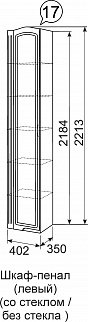 Шкаф-пенал ЛЕВЫЙ СО СТЕКЛОМ №17 (верх полки стекло / низ полки ЛДСП)