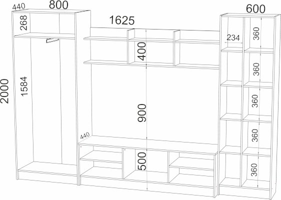 Функционал хранение одежды / хранение посуды / зона для ТВ