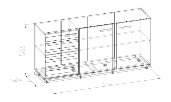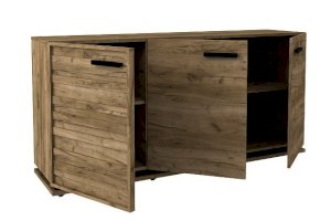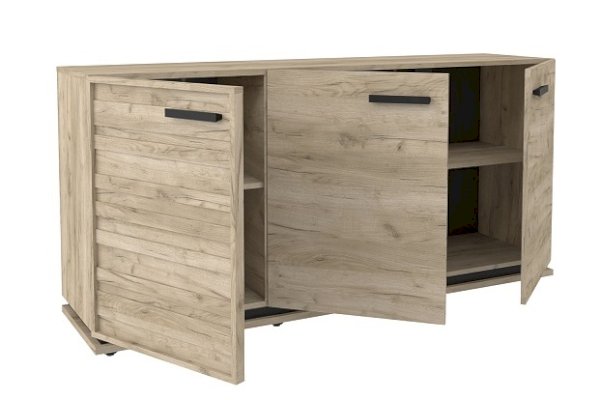 Тумба МЦН – функциональный модуль, который подходит не только для хранения вещей, но и для размещения телевизора. Тумба из трех отделений, за распашными дверцами которых полки, регулируемые по высоте. Изюминку тумбе придает необычный фасад в массивной раме и с раскладкой. Контрастные темные ручки из массива дерева подчеркивают цвет и текстуру натурального дерева. Регулируемые опоры компенсируют незначительные неровности пола.
