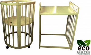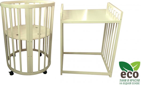 круглая кровать и пеленальный столик цвет венге/слоновая кость
