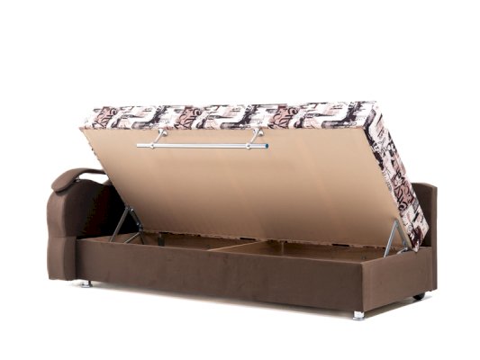 • Тахта изготовлен на базе пружинного блока, которые крепятся к каркасу, обеспечивая повышенную комфортность дивана. На пружинном блоке размещен матрас, выполненный из ППУ.