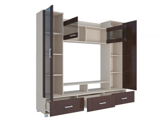 • Фасад и корпус стенки изготовлены из ламинированной ДСП